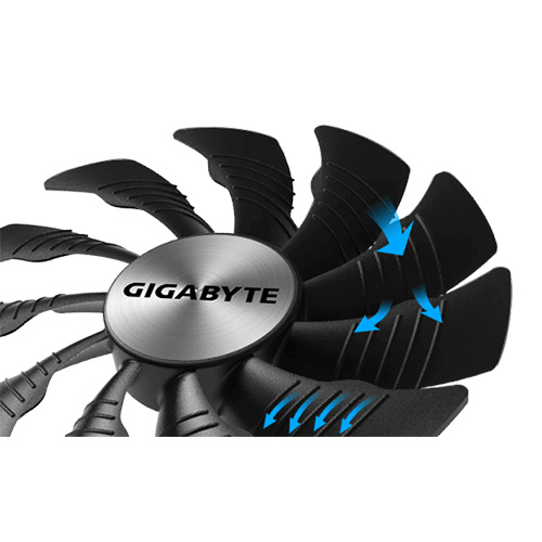 The GIGABYTE “Alternate Spinning” is the only solution that can solve the turbulent airflow of adjacent fans. Since the adjacent fans rotate in the same direction, the airflow direction is opposite between the fans, which will cause turbulent airflow and reduce heat dissipation efficiency. GIGABYTE turns the adjacent fans in the opposite direction, so that the airflow direction between the two fans is the same, reducing the turbulence and enhancing the airflow pressure.