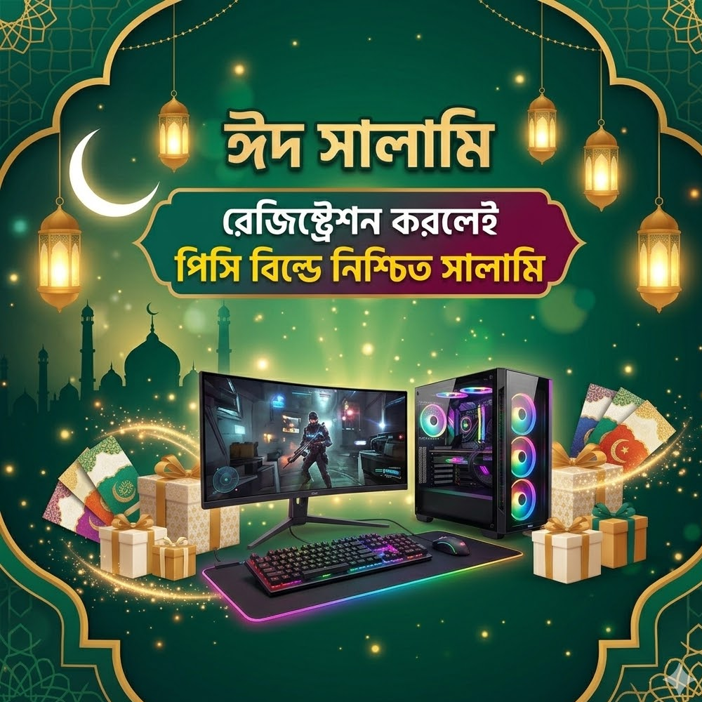 রেজিষ্ট্রেশন করলেই পিসি বিল্ডে সর্বোচ্চ ১০,০০০ টাকা পর্যন্ত ঈদের সালামি।